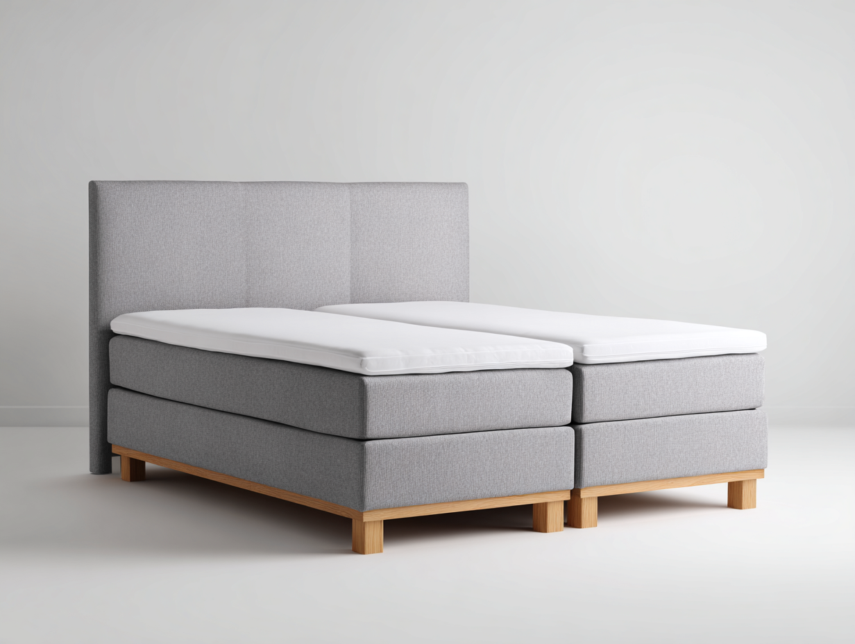 Die geteilte Liegefläche unterstützt eine gleichmäßige Gewichtsverteilung und bietet eine komfortable Grundlage für den täglichen Schlaf. Die stabile Bauweise sorgt für eine zuverlässige Nutzung im Alltag. Das zeitlose Design lässt sich problemlos mit verschiedenen Schlafzimmermöbeln kombinieren.