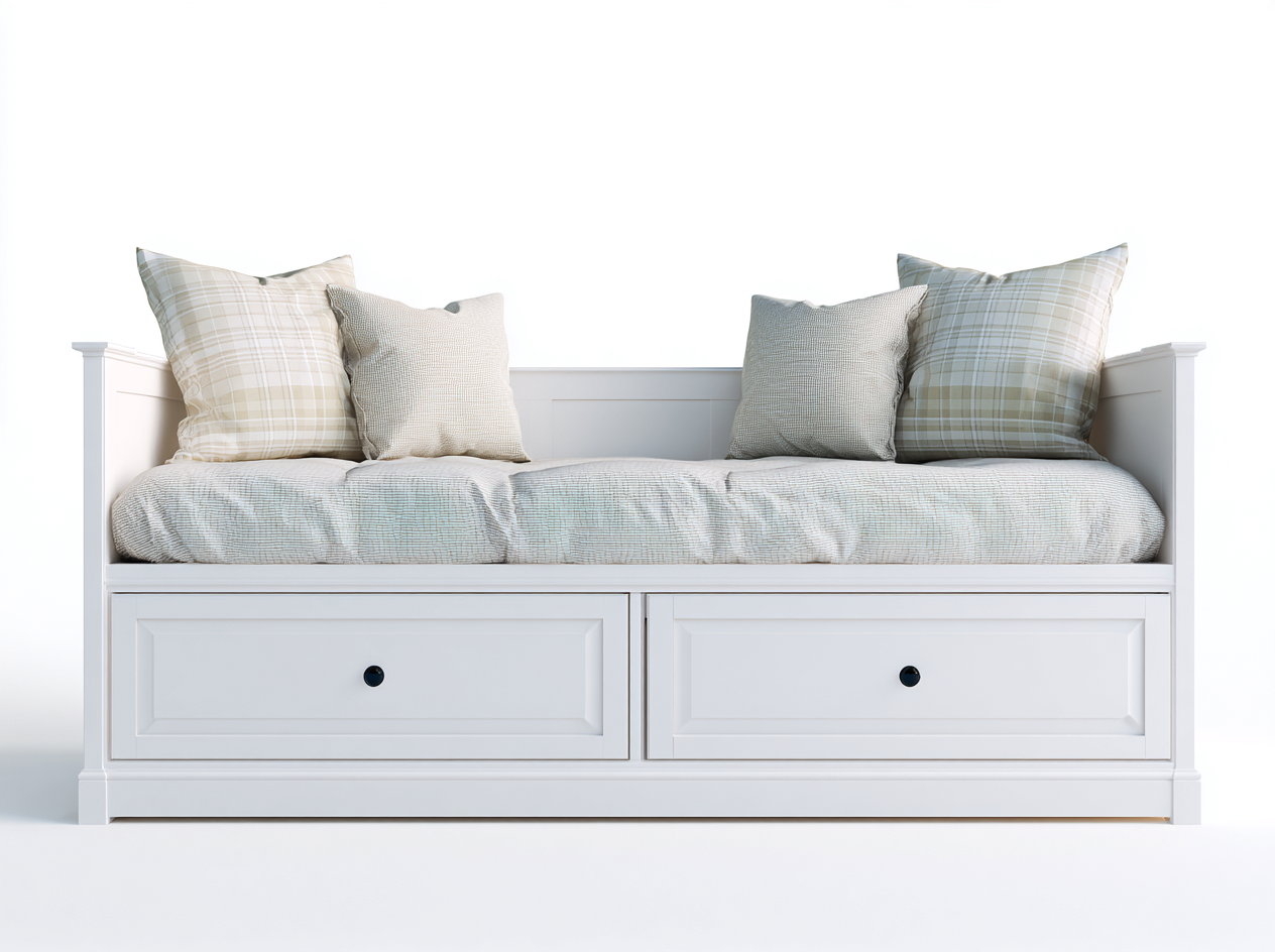 Gefertigt aus einer stabilen Holzkonstruktion mit weiß lackierter Oberfläche bietet dieses Schlafsofa eine zuverlässige Stabilität im täglichen Gebrauch. Die sorgfältige Verarbeitung sorgt für eine langlebige Struktur, während die glatte Oberfläche eine einfache Reinigung ermöglicht.